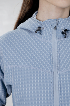 Campera Grid Fleece Capucha Celeste
